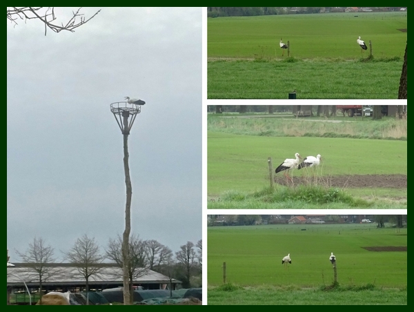 Een prachtig gezicht vanmorgen. Er liepen 2 ooievaars voor ons keukenraam.