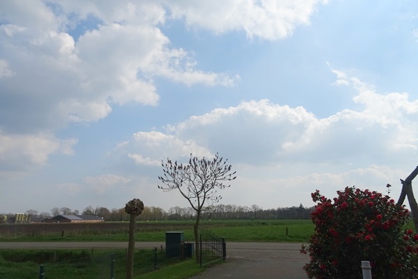 12 april. Min. temp. 4,2 gr. Afgelopen nacht viel er 3,6 mm regen. De stof is weg. Overdag bleef het droog. Prima Sportief Wandel weer! Op de fiets was de jas nog wel nodig.